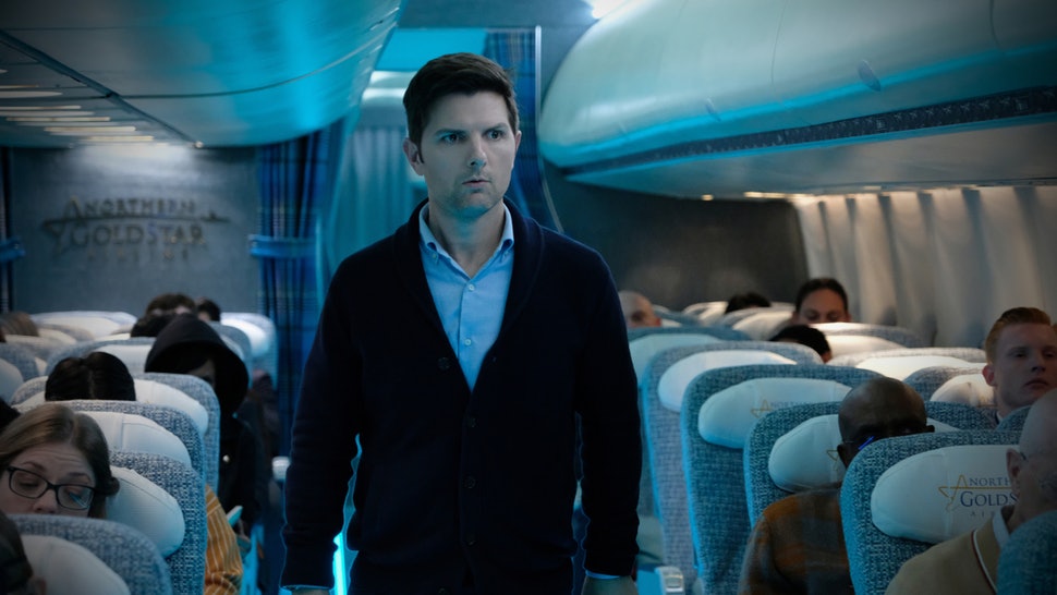 Alors que le pilote de la série développait une histoire inédite, ce remake d’un épisode de la série originale permet de mieux déterminer les partis pris de la nouvelle série. A noter que « Nightmare at 20000 Feet », épisode signé Richard Matheson et interprété par William Shatner avait déjà été remaké en 1983 par George Miller comme segment du film « The twilight Zone », où il mettait en scène John Lithgow. Dans ces versions, la cause de la paranoia des deux hommes était une mystérieuse créature juchée sur l’aile de l’avion et qui était visiblement en train de le saboter. La nouvelle version choisit de baser la paranoia du personnage interprété par Adam Scott sur un podcast prédisant la disparition imminente de l’avion où il se trouve. Le journaliste décide d’enquêter, égrainant les pistes proposées par le podcast et passant pour un cinglé aux yeux des autres voyageurs. Seul un homme qu’il a rencontré avant le décollage, un ancien pilote, semble le croire.