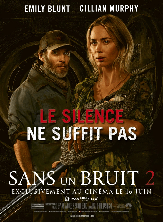 Acteurs Principaux : Emily Blunt, Millicent Simmonds, Noah Jupe, Cillian Murphy, John Krasinski, Djimon Hounsou, Scoot McNairy
