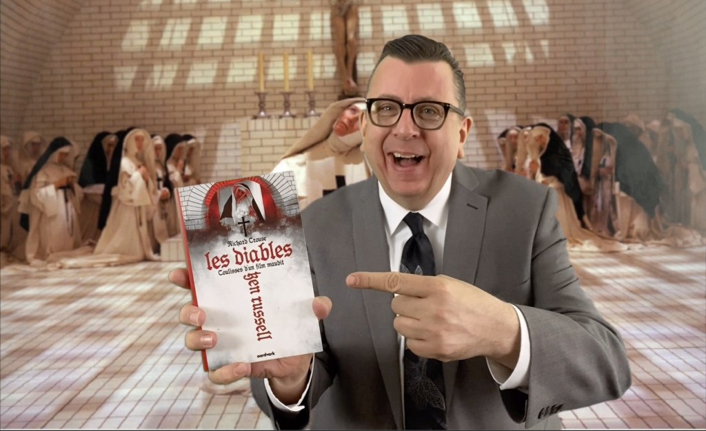 Les diables, les Coulisses d’un film maudit, sorti chez l’éditeur Aardvark est la traduction française du livre Raising Hell du canadien Richard Crouse sorti en 2012. Il conte le tournage peu banal de cet objet filmique jusqu’au-boutiste, son passage par les ciseaux de la censure anglaise puis américaine, son accueil public et sa destinée de graal de poignées de cinéphiles. Le récit chronologique – immersif – est agrémenté de portraits des créateurs, de témoignages des réalisateurs que Ken Russell à inspirés et de personnes ayant participé au tournage. A une interview passionnée de Guillermo del Toro (pléonasme) déjà présente dans la version anglaise, l’éditeur a eu la bonne idée de juxtaposer la réception que les critiques françaises ont fait de l’objet. Il ressort de sa lecture une ironie certaine, que le lecteur pourra apprécier même sans avoir vu le film, car les scènes décrites auront déjà imprimé son imaginaire.