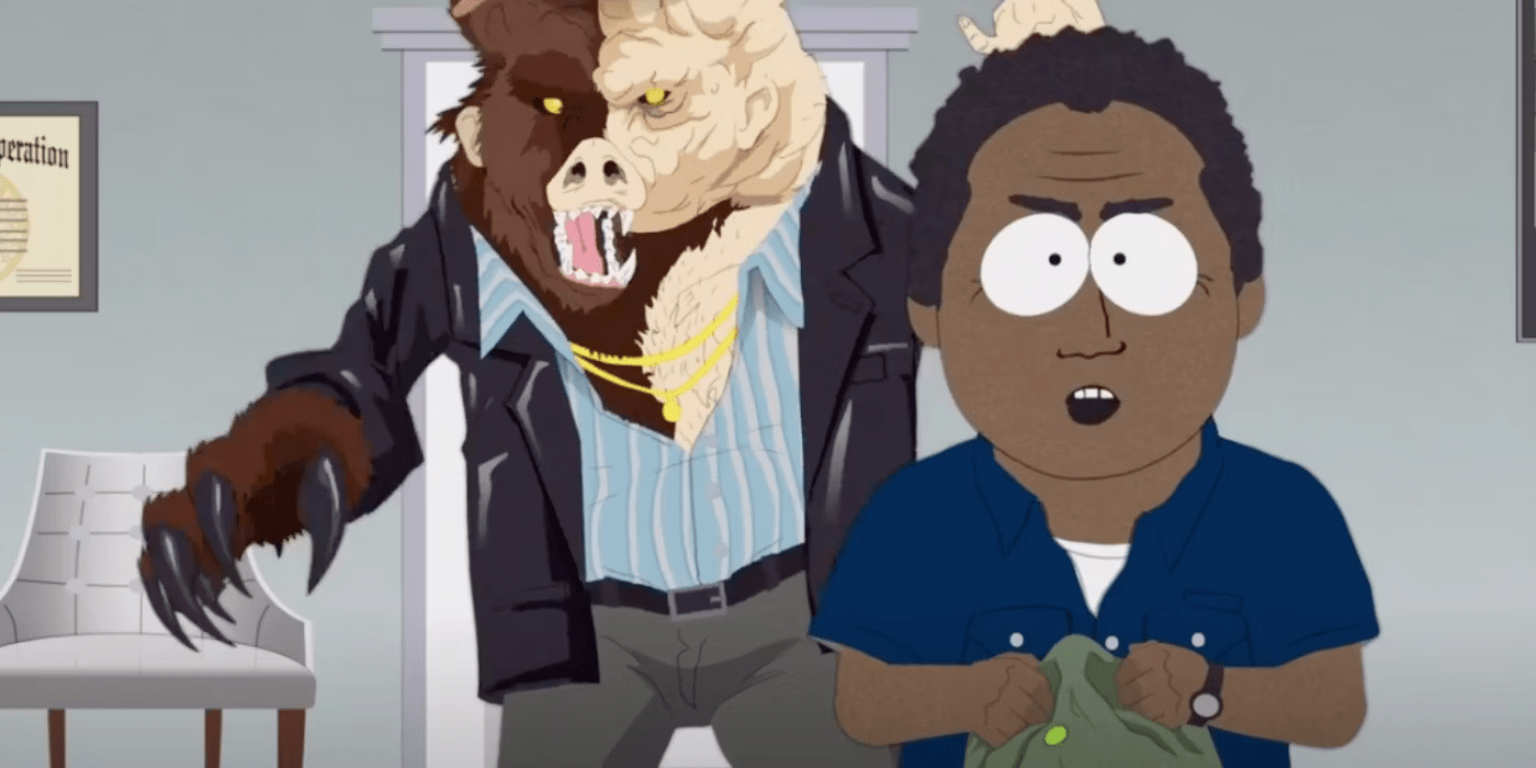 On peut le dire sans trop se mouiller. The Streaming Wars n’atteint pas le niveau de jouissance immédiate du Pandemic Special ou du Post COVID Special. Mais il est très habilement scénarisé. Les graines semés dans le premier téléfilm peuvent sembler inutiles ou redondantes, mais elles produisent de beaux fruits dans le suivant – pour peu qu’on puisse comprendre ses différents niveaux de lecture. South Park a toujours eu plusieurs niveaux de compréhension : l’intrigue de l’épisode est souvent la métaphore de l’actualité politique et sociétale des Etats-Unis, et parfois, la série parle d’elle-même en utilisant sa propre mythologie. The Streaming Wars croise les effluves en réssuscitant ManBearPig, monstre qui était apparu dans la saison 10, dans un épisode où les gamins partaient en chasse contre lui avec Al Gore. ManBearPig était la personnification du changement climatique, que Gore exploitait pour attirer l’attention sur lui-même. Il revenait en chair et en os pour semer la terreur lors de la saison 22. Dans cette nouvelle histoire, le monstre n’a pas d’autre rôle que celui d’incarner le réchauffement climatique – de nouveau exploité pour des desseins encore plus sombres.