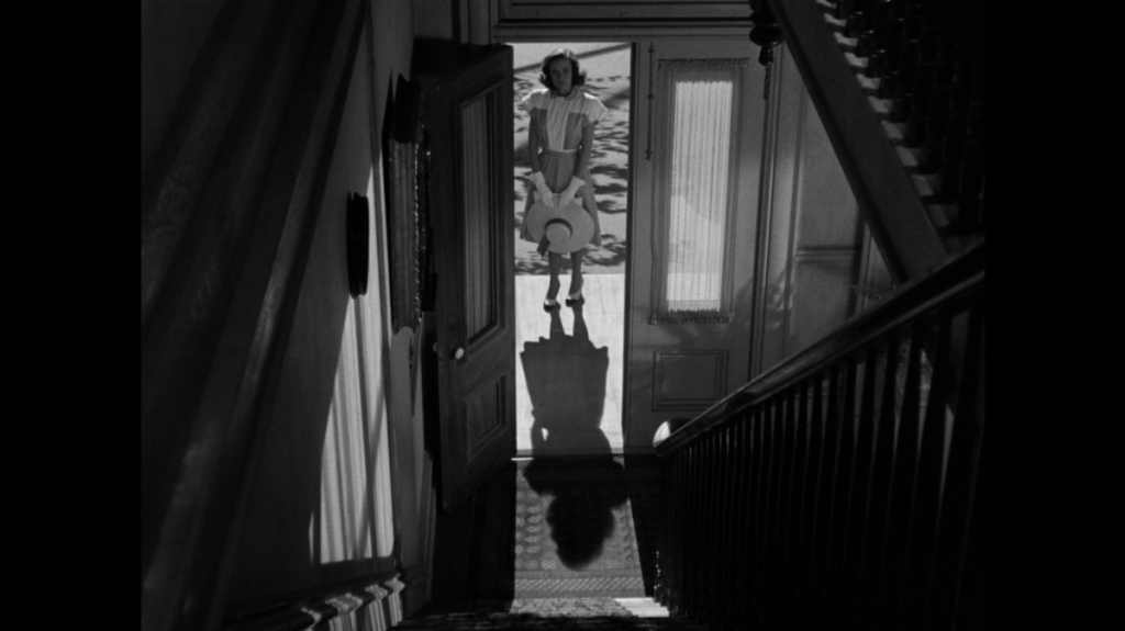 Charlie n’a jamais été aussi proche de son oncle. Elle voit en lui. Celui-ci n’a alors qu’un seul choix, lui faire partager sa vision, d’abord en la bousculant, puis en jouant sur le chantage affectif. Dès lors elle passe de l’autre côté, loin du monde binaire de sa famille. Le jeu de rapprochement se transforme en une partie de survie. Les cadres qui célébraient autrefois l’alchimie du couple s’ingénient à les séparer. C’est une suite d’observation. Chacun épie l’autre par une série de plongés et de contre-plongés élégants, déterminant celui qui a l’avantage dans cet affrontement larvé. Lorsqu’ils partagent le même cadre, c’est un malaise qui s’en dégage. Pourtant ces deux personnages, même séparés n’ont jamais été aussi proches, ils vivent dans un monde parallèle à celui des autres qui ne connaissent pas leur secret, de ceux qui continuent d’adopter le point de vue de Charlie au début du film : l’oncle Charlie est merveilleux. Charlie est coincée dans ce nouveau monde, retenue par la peur d’occasionner à sa mère un chagrin irrémédiable. On assiste ainsi à la valse le plus intime de personnages hitchcockiens, une guerre psychologique et bientôt physique où on devine qu’un des deux devra fatalement y passer.
