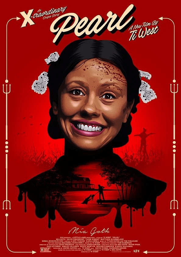 Sorti en France avec beaucoup de retard en novembre 2022, le X de Ti West (The Innkeepers) a été porté aux nues comme un des slashers les plus novateurs de son époque. S’il est loin de tenir sa réputation, il faut lui reconnaître une belle application à faire revivre les 70’s et on ne peut que saluer la double performance de Mia Goth. A la fois scream queen et bourreau, l’actrice au charisme étrange devenait instantanément une icône du cinéma d’horreur. Ti West et la maison de production A24 avaient de toute évidence prédit cette révélation car la préquelle de X, annoncée dès la sortie du film, avait déjà été tournée. Officiellement, les risques d’aggravation de la pandémie qui empêchaient toute autre tournage avaient donné quelques libertés à Ti West et à son actrice, qui purent discuter de la backstory de la vieille femme de X. A l’instar de Quentin Tarantino et Uma Thurman qui avaient créé ensemble (sur le tournage de Pulp Fiction) le personnage de la mariée de Kill Bill, le tandem rempilait dans la foulée du premier film avec Mia Goth au poste de co-scénariste et de productrice, sous la bénédiction de A24. Il serait vain de dénoncer le côté roublard de la démarche, encore appuyé par l’annonce d’un troisième volet MaxXxine, séquelle de X, car le cinéma d’horreur a toujours fonctionné sur l’exploitation. Mais nous n’allons pas cacher le twist du premier film (un de ses seuls vrais rebondissements) puisque ses artisans se sont sciemment coupés l’herbe sous le pied.
