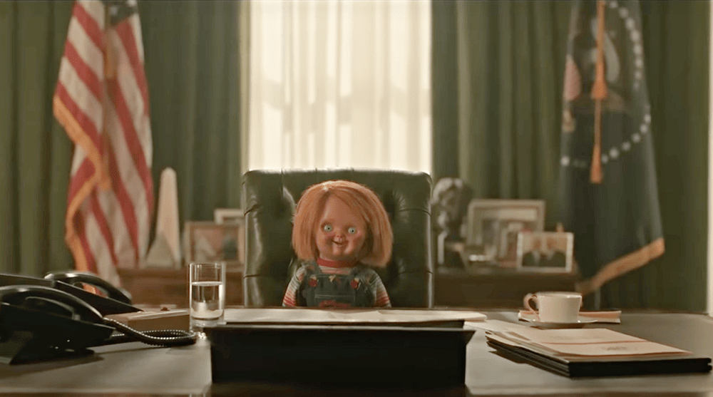 Après la religion, Chucky s’attaque donc à la politique. Si cette saison 3 avait été un film, il aurait pu s’appeler « Chucky à la Maison Blanche ». Don Mancini est son équipe semblent être revigorés par cette nouvelle idée, qui est pour eux comme une mine d’or. La maison blanche n’est-elle pas la maison où des décisions ont été prises sur la vie de milliers de gens ? L’exploration ne se limite pas au bureau ovale. Les scénaristes explorent tous ses recoins, dans les fantômes nés dans l’enceinte de Washington, dans les multiples ailes et sous-sols (jusqu’à la préparation de la bombe atomique), dans le secret d’Etat et les arcanes des services secrets (via le personnage incarné par Gil Bellows). Le cheval de Troie est l’enfant d’un président qui a misé sur une transparence complète de chacun de ses faits et gestes, qui sera mise à mal par les meurtres commis par Chucky dans les lieux et l’habitude historique de l’administration présidentielle de tout passer sous secret. L’idée de couper la saison en deux – pour cause de grève des scénaristes durant le tournage – a permis de ne pas handicaper l’écriture et a sans doute contribué à ce que la dernière partie soit aussi dense. On n’a pas le temps de s’ennuyer. On s’attache très vite au petit microcosme de la nouvelle demeure de Chucky, toujours haut en couleurs et on rit de la façon dont Charles Lee Ray détourne à ses fins les symboles de la nation américaine.