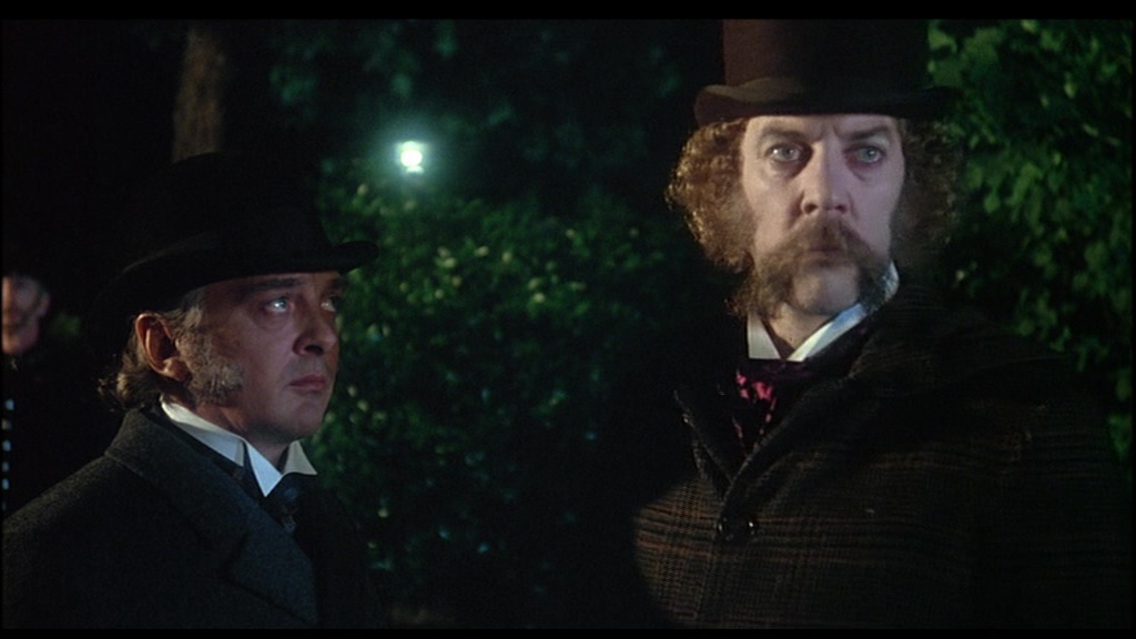 Moins patronisé par Holmes, plus intelligent, le Watson de James Mason est complémentaire au détective. L’attachement réciproque des deux compères et leur franche camaraderie apportent des moments de détente salutaires au sein d ‘une intrigue très noire. Le reste du casting se partage entre une distribution canadienne de premier ordre. Donald Sutherland incarne le médium Robert James Lees tandis que Genevieve Bujold réussit en une scène (reprise de manière bien moins efficace dans le film des frères Hugues) à obtenir son meilleur rôle à l’écran. Le casting anglais est quand à lui un condensé des acteurs les plus prestigieux de l’époque : Sir John Gieguld, Anthony Quayle, David Hemmings ou bien Frank Finlay (6). La prestance de ces comédiens apporte à ce qui semble être un film modeste une ampleur et un souffle insoupçonné, ainsi qu’un message profond qui mène au-delà de l’histoire de Jack l’Eventreur.