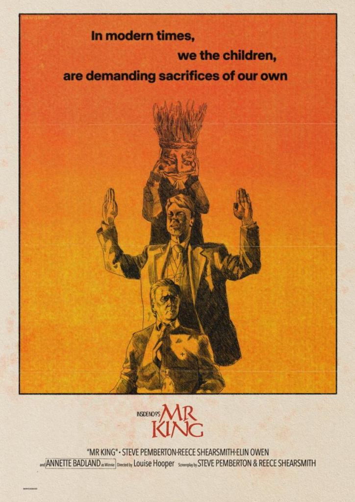 Autant vous prévenir tout de suite. Ce Mr King est un des épisodes les plus politiquement incorrects de la série. Il prend pour cible les gallois et de pauvres têtes blondes retirés de la civilisation, esquisse un sujet sur la pédophilie, photographie des sexes d’hommes (en nous montrant les photos) pour finir dans un final horrifique baigné dans le folk horror. Le ton général de Inside no. 9 est tellement éloigné des premiers délires sur les locals people de The League of Gentlemen qu’on en arrive à être surpris de les revoir sur ce terrain dans une version juvénile de The Wicker Man de Robin Hardy (on notera que le nom « Hardy » est bien prononcé en hommage). De menace urbaine pour les gentils élèves naïfs (il leur impose des posters de Greta Thunberg), Mr. Curtis se mue en héros pour finalement devenir la victime de l’horrible culte qui semble se dérouler depuis des siècles dans la petite ville.