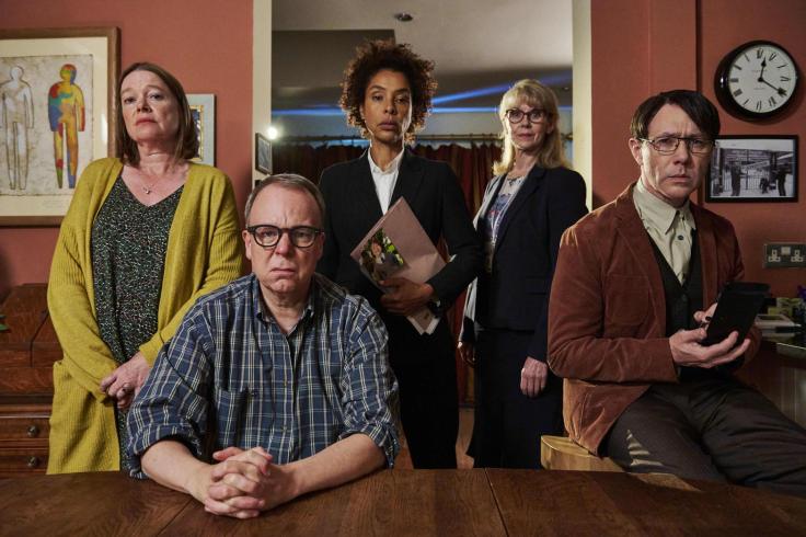 Inside n°9 nous offre de temps en temps des épisodes où l’émotion dépasse l’humour noir et la satire. Merrily Merrily est de ceux-là. Dès que nous découvrons que cette réunion a été organisée pour enterrer les cendres de la femme de Lawrence, le ton vire à 180 degrés vers un drame porté par une émotion puissante. On finit par s’habituer à la maestria avec laquelle Pemberton et Shearsmith gèrent plusieurs ruptures de ton sur des épisodes de moins de 30 mn. Voir passer Reece Shearsmith en quelques secondes de parodie du bougon insatisfait à veuf au bout du rouleau prêt à mourir frigorifié pour porter un dernier hommage à sa femme donne des frissons. Après le diable la saison dernière, c’est la mort dans sa représentation mythologique grecque qui vient rendre visite à Inside n°9 dans un final qui se passe de mots.