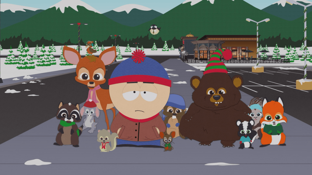 Le niveau d’empathie pour Satan n’a jamais été aussi fort que dans ce The Crap-Out qui avance gaiment jusqu’à une conclusion surprenante. On y retrouve un Servietsky qui vit la fin de son calvaire de serviette à sperme de Donald Trump et qui parvient par sa grande présence à compenser l’absence de Cartman, Kyle, Kenny et des autres enfants de South Park. C’est Stan qui occupe logiquement seul le devant de la scène, car c’est lui qui a le plus besoin d’un miracle, et nous sommes, rappelons-le, dans un épisode de Noël. A ses côtés, c’est le grand retour des Woodland Critters , ces animaux super mignons adorateurs de Satan imaginés par Cartman dans l’épisode de la saison 8 « Woodland’s critter christmas ». Les animaux sont bien remontés pour le « big crap-out » (la grande raclée), mais ils ne font pas grand-chose de plus que de remonter Stan.