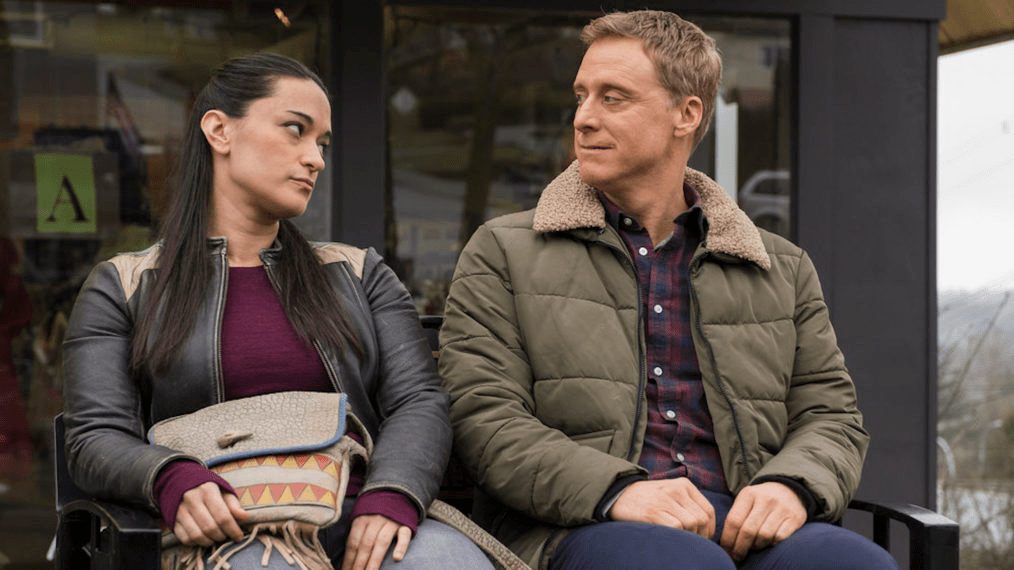Le grand fil rouge de Resident Alien, outre la menace de destruction de notre planète, est l’humanisation de l’alien. Prisonnier de son enveloppe, Harry finit par ressentir des émotions humaines auxquels il réagit comme il peut, alors qu’il doit absolument trouver son dispositif mortel pour mener sa mission à terme. Les arguments de son peuple pour détruire l’espèce humaine sont très pertinents, à charge du showrunner Chris Sheridan de renverser la vapeur. Quels sont les arguments des êtres humains pour éviter leur propre destruction ? Le créateur de la série n’a pas l’intention de se reposer uniquement sur une « révolution » de l’intérieur. Il veut nous faire aimer ces humains qui entourent Harry, et il n’a aucun mal à le faire. En tête de liste, Sara Tomko incarne une Asta touchante et moderne qui lutte contre un passé difficile et une relation toxique empreinte de violences conjugales, mais qui est aussi entourée de personnes bienveillantes. Le naturel avec lequel se fait la collision entre le monde très réel qu’elle et son amie (non moins irrésistible) D’Arcy incarnent et la fantasie de la série est une des grandes originalités de Resident Alien. Il faut une écriture fine et dosée pour faire passer autant de noirceur, naviguer en permanence entre la comédie et la tragédie humaine. Et il faut un beau talent pour embarquer, épisode après épisode, le télespectateur et lui faire tomber la blasitude d’années de personnages moyens. On aime être à Patience au milieu d’Asta, son père adoptif Dan, son amie D’Arcy, le maire Ben et sa famille, le shérif et son adjointe Liv (…). Pour son niveau d’attachement aux personnages, Resident Alien est comparable à sa cousine de SyFy Z Nation. On trouve aussi une touche assumée de Twin Peaks dans cette façon de nous envelopper dans un microcosme, et une veine feel good / questionnement de la nature humaine qui rapproche cette série de Dead Like Me, la première oeuvre trop méconnue de Bryan Fuller.